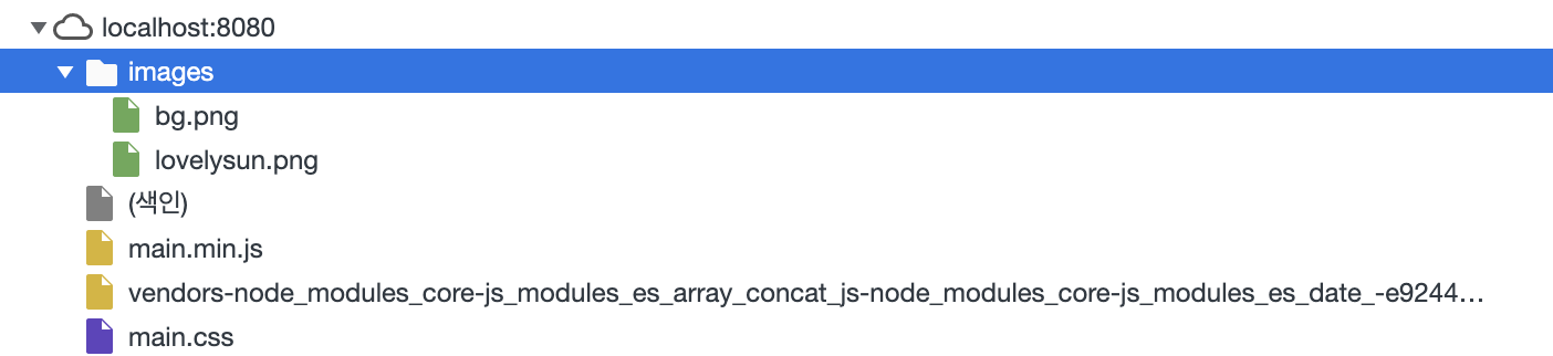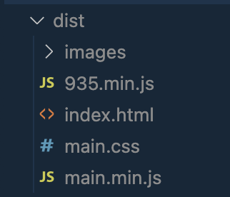 설정에 따라 최적화, 압축이 된 것을 볼 수 있다. 현재 기본 세팅은 js 파일만 빌드를 하는 것이다. src 폴더 내에 개발할 파일을 넣어주면 됩니다.