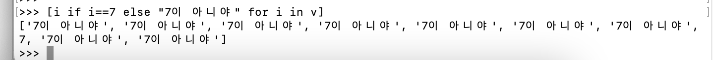 [조건 만족시 출력값 if 조건 else 조건 불만족시 출력값 for i in 배열]